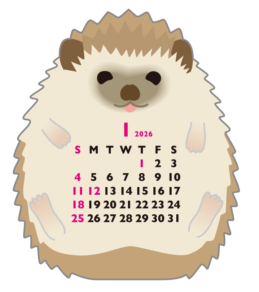 2026 Calendar-Animal Die Cut - MINI HEDGEHOG