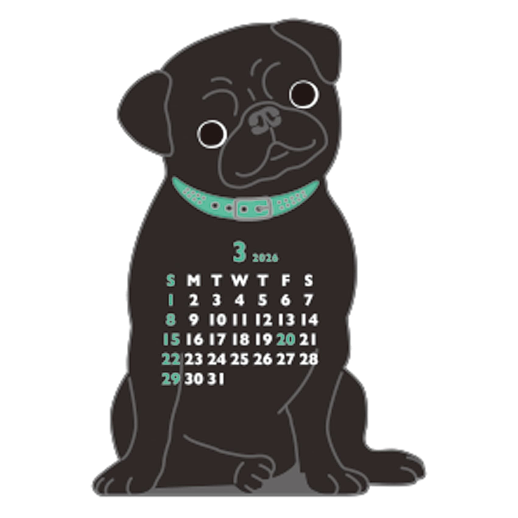 2026 Calendar-Animal Die Cut - MINI PUG