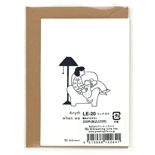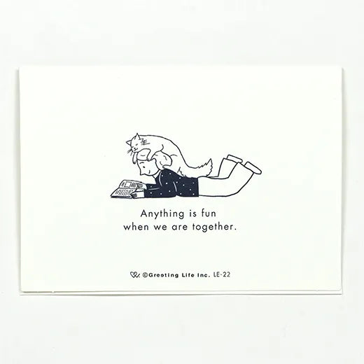 This card will cheer you up with the image of cats and dogs happily snuggling up with people.