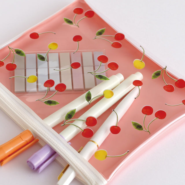 This PVC pouch highlights the freshness of fruit. It features an acrylic charm attached to the handle.