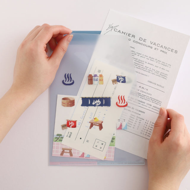 This A5-size, three-pocket clear file is convenient for organizing small documents and other small items.