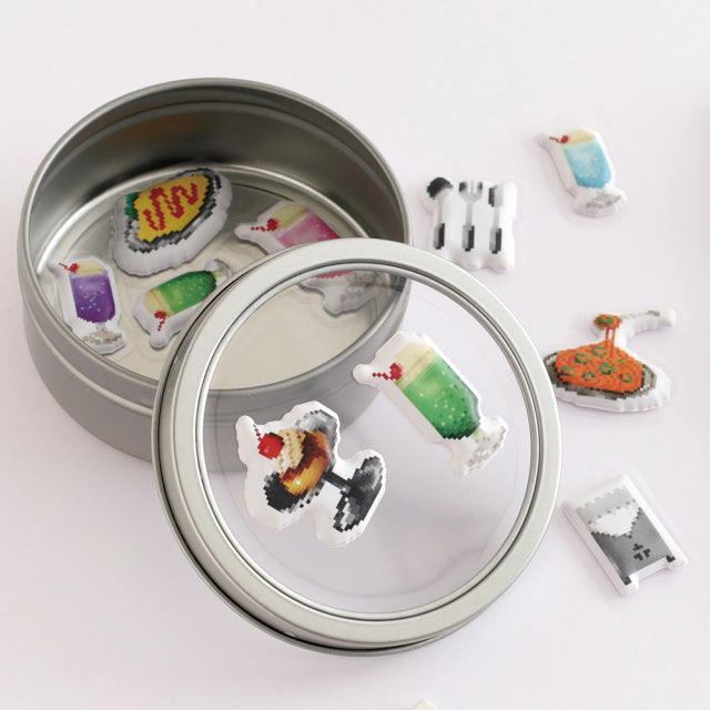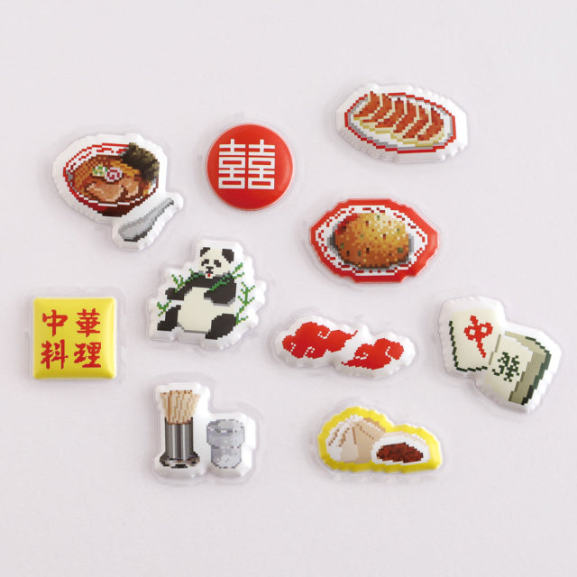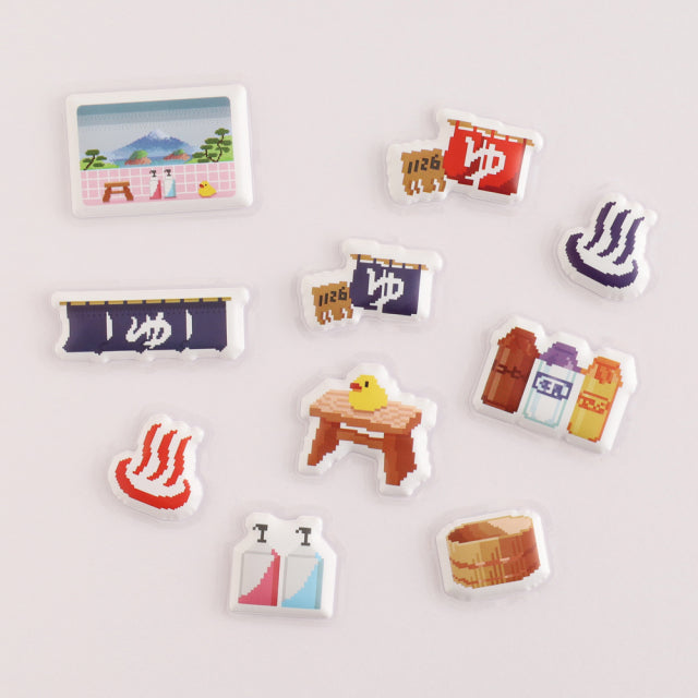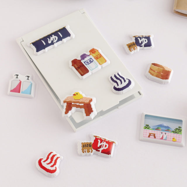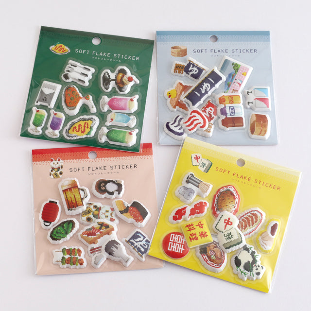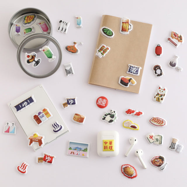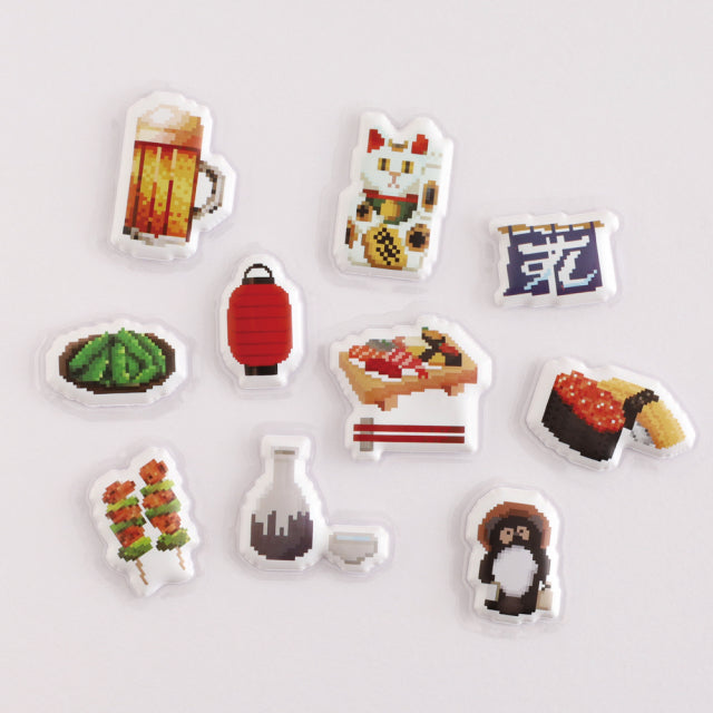 Squishy flake stickers The "pixelook" series depicts various aspects of Japanese culture through pixel art.