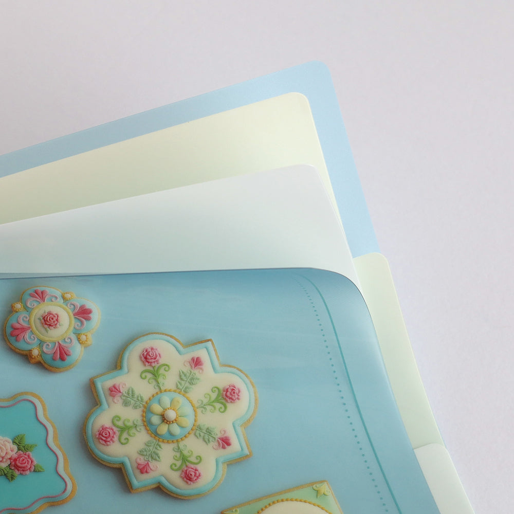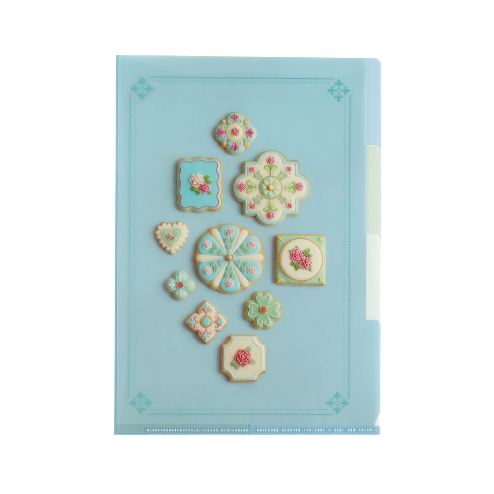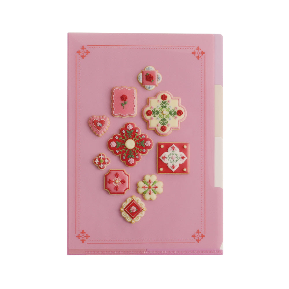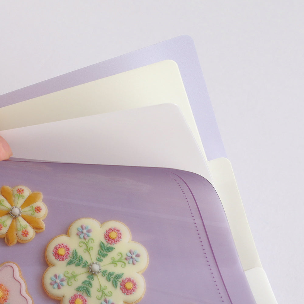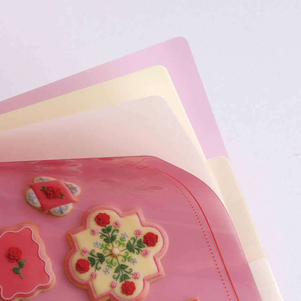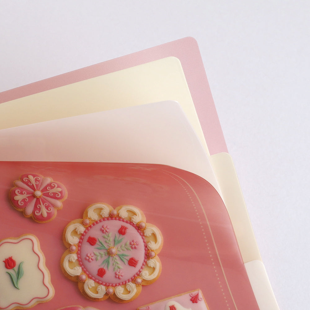 This flower-themed series evokes the beautiful designs and worldview of icing cookies. This A5-sized, three-pocket clear file is convenient for organizing receipts and other small items.