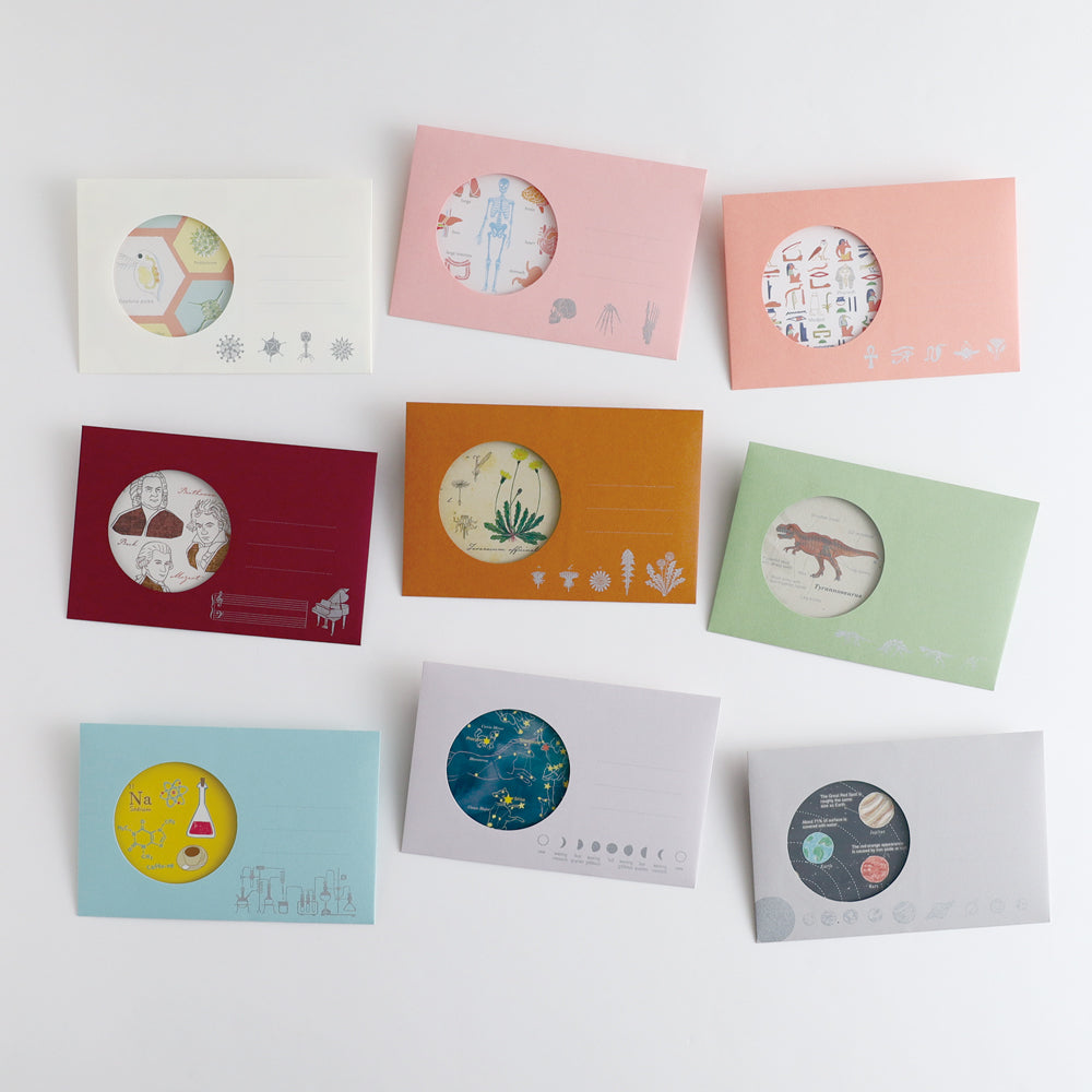 When you put the letter paper in the envelope, you can see a picture like an illustrated book. The seal also has a picture of each academic field.